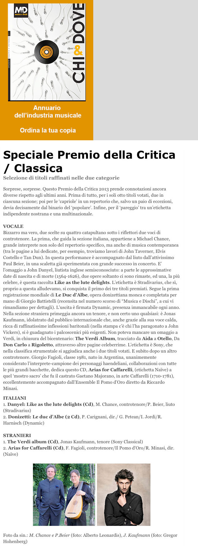 Michael Chance and Paul Beier - Excerpts from the Italian press